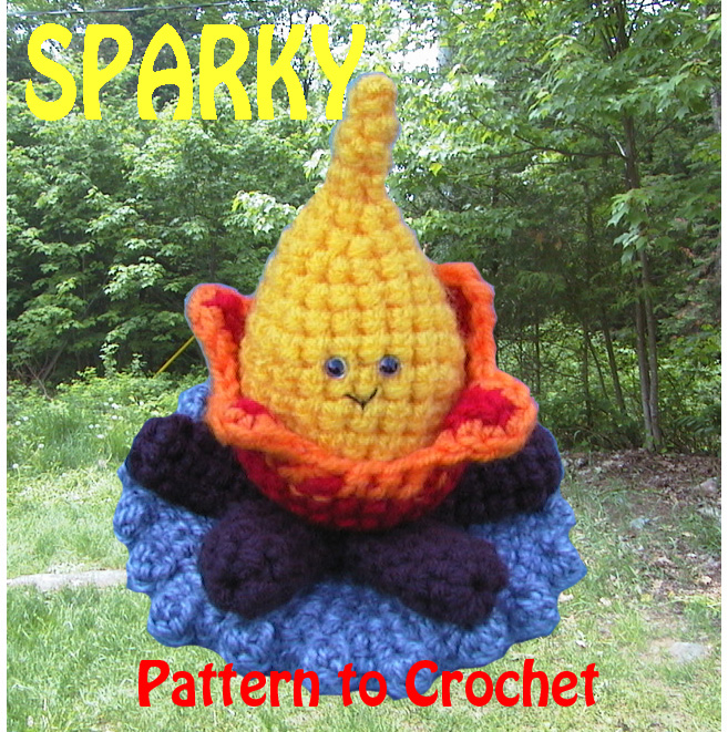 With worsted weight yarn and a 3.5mm (E/4) crochet hook, Sparky is approx 11.5 cm (4 1/2 inches) tall |